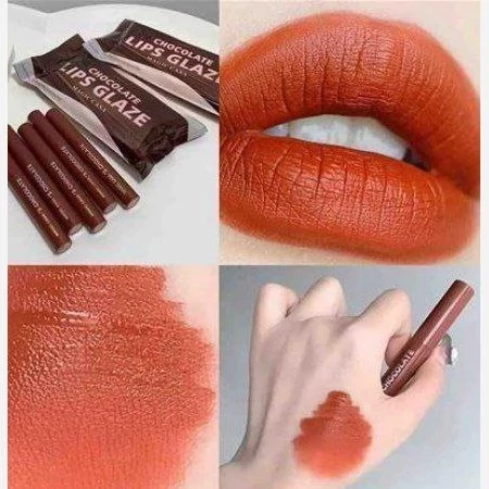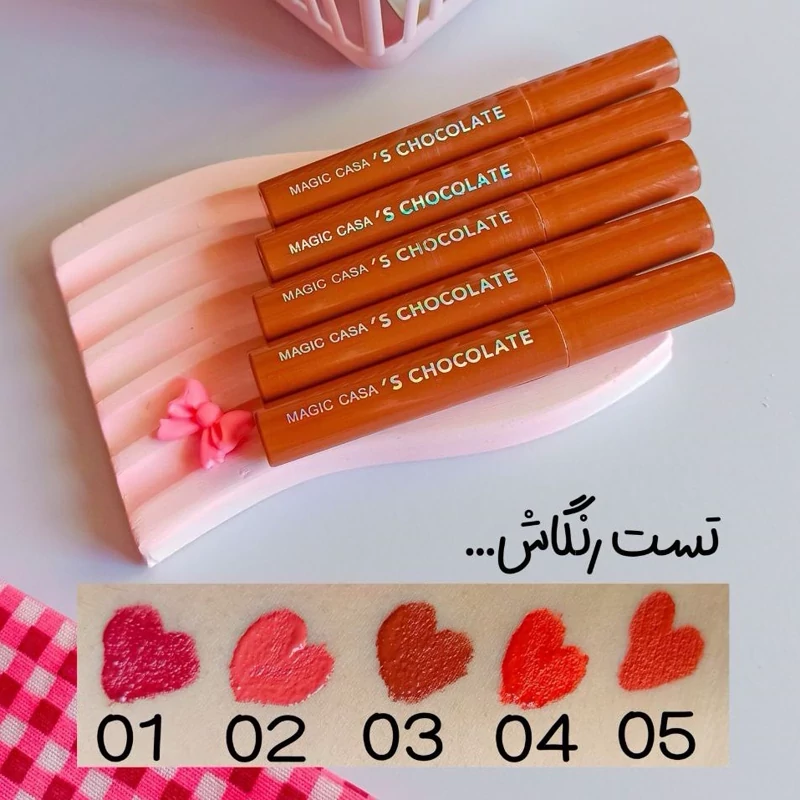 رژ شکلاتی 5تایی🍫 💄5 رنگ رژ لب مایع با رایحه شکلات🍩 💄توناژ رنگی خوشگل ودلبر😋 💄فینیش مات و مخملی 😍 💄ماندگاری فوق العاده ✔️ 💄کاملا ضد آب🌀 💄بافت بسیار سبک 💄عطر و بوی واقعی شکلات میده ☑️یک پک کامل شامل 5رنگ رژ مایع