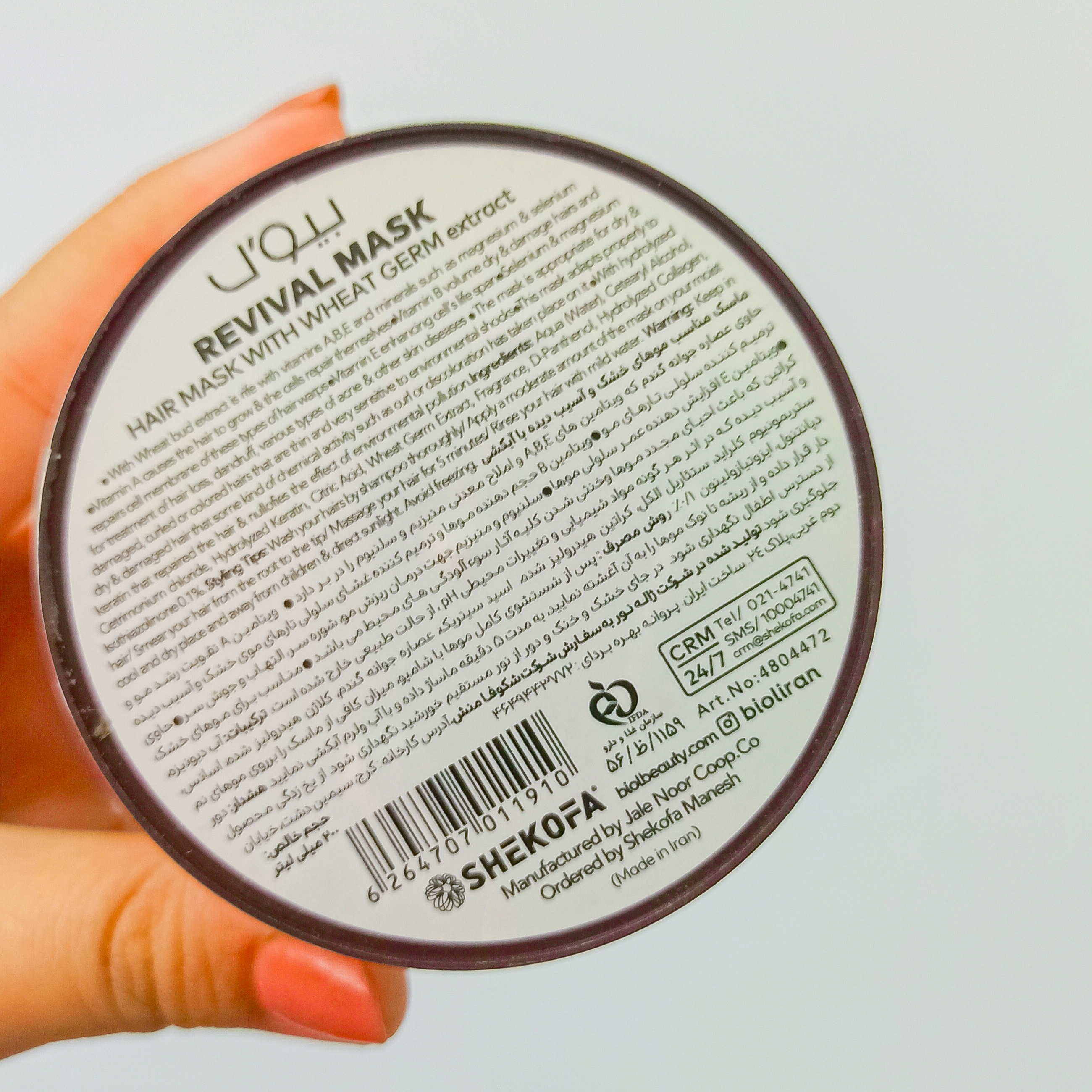 ماسک موی بیول با عصاره جوانه گندم حاوی ویتامین های A ,E , B بوده و سرشار از املاح معدنی منیزیوم و سلنیوم می باشد . این ماسک با اتکا به دارا بودن ویتامین های خانواده B دارای حجم دهندگی کاملاً مناسب برای گیسوان خشک و آْسیب دیده می باشد و ترمیم قشای سلولی این گونه تارهای مو را انجام می دهد. سلنیوم و منیزیوم موجود در جوانه گندم در درمان ریزش مو، رفع شوره سر و رفع انواع جوش و ناراحتی پوستی موثر است. ماسک موی بیول با عصاره انار موجود در آن باعث تثبیت و ماندگاری رنگ مو می شود. همچنین این عصاره دارای ویتامین های A & B & C & E می باشد. ویتامین A باعث جوان سازی تارهای مو، ویتامین B حجم دهنده و جلوگیری از ریزش مو، ویتامین C تقویت مو، ویتامین E هم درخشش و مغذی موها می باشد. این ماسک دارای آهن است که از ریزش و نرمی موها جلوگیری می کند و به آنها استحکام می بخشد. کراتین موجود در آن برای احیا و ترمیم ساقه مو به کار میرود.